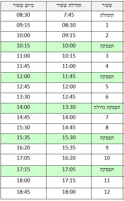 • חופשות ולוח צילצולים